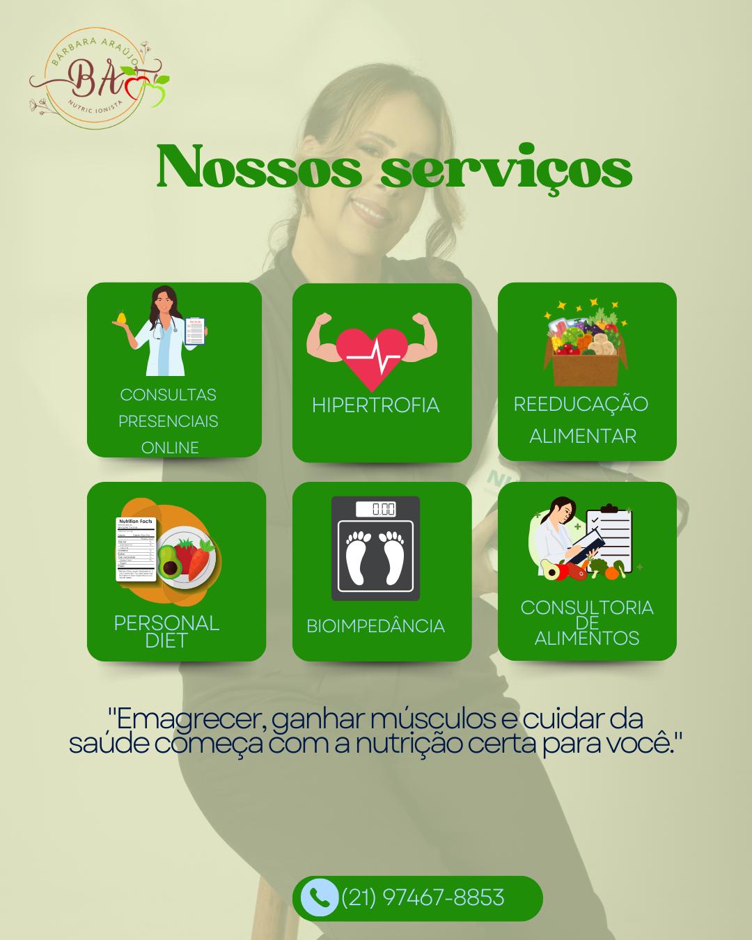 Sou nutricionista Clínica, Especialista em Emagrecimento, Hipertrofia, Saúde da Mulher e Nutrição Esportiva.